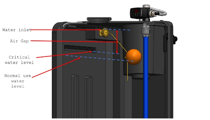 TankBoost CAT 5 Type AB air gap features an air gap between the inlet and outlet and a weir to ensure that the water in the tank does not flow back into the mains supply.