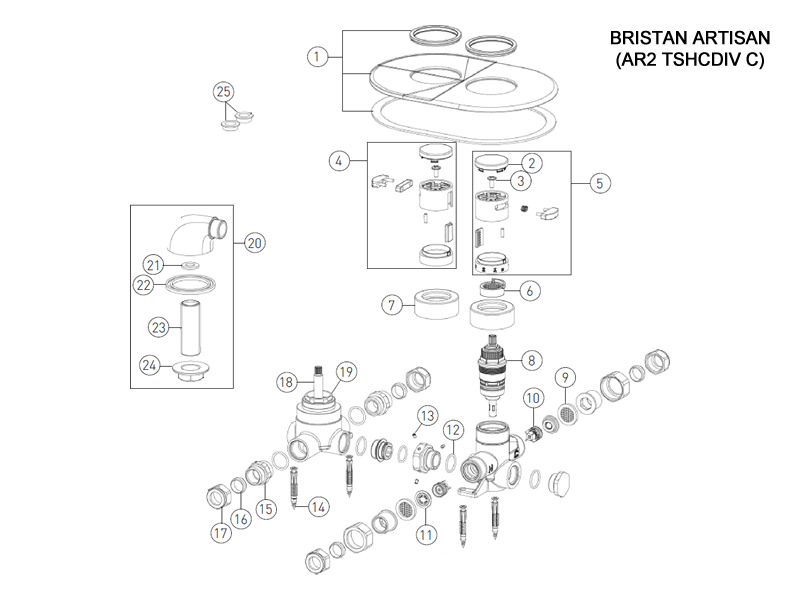 All available shower spares/replacement parts to fit the Bristan Artisan Recessed with Diverter (AR2 TSHCDIV C).