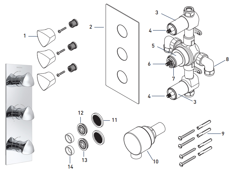 Do you have a question about the Bristan Bright recessed three handle control shower valve with integral twin stopcocks (BRG SHC3STP C)?