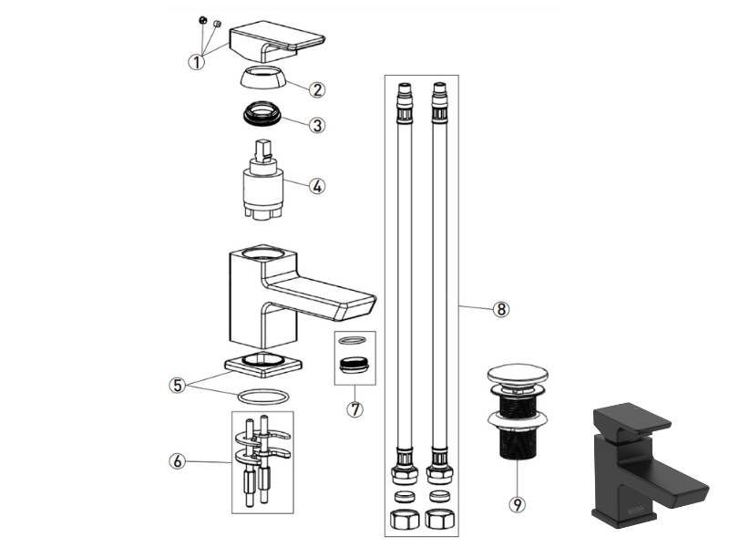 There are 9 currently available spares for the Bristan Cobalt Basin Mixer With Clicker Waste - Black (COB BAS BLK).