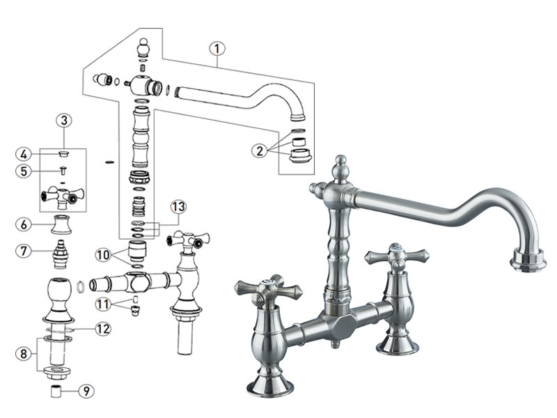 Bristan Colonial Bridge Sink Mixer - Brushed Nickel (K BRSNK BN) Spare Parts