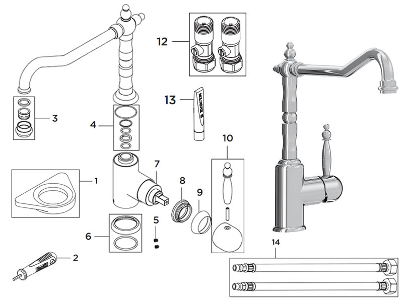 All available replacement spare parts to fit the Bristan Colonial Easyfit Sink Mixer - Chrome (K SNKSL EF C).