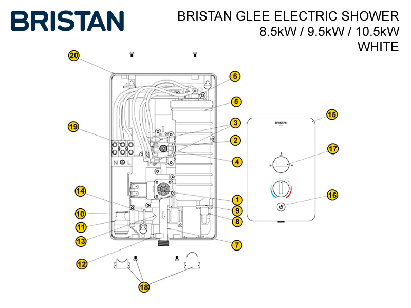 There are 19 currently available spares for the Bristan Glee MK1 electric shower.