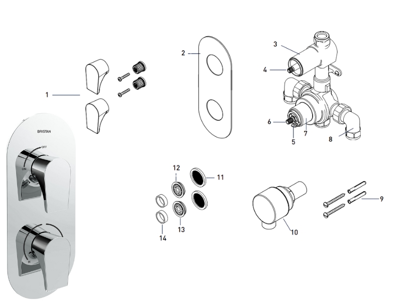 There are 14 currently available spares for the Bristan Hourglass Concealed Dual Shower Valve - Chrome (HOU SHCVO C).