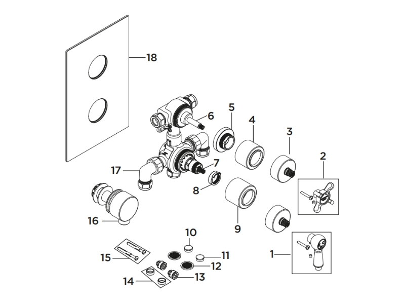 Use the main diagram to identify the shower spare(s) you need to replace. Then use the table below to locate your relevant part(s).