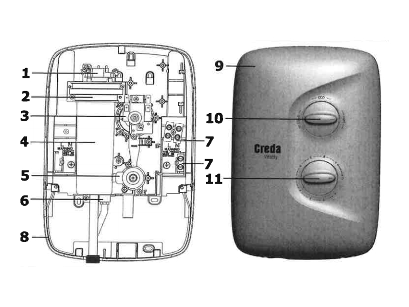 All available shower spares/replacement parts to fit the Creda Vitality electric shower (53562860).