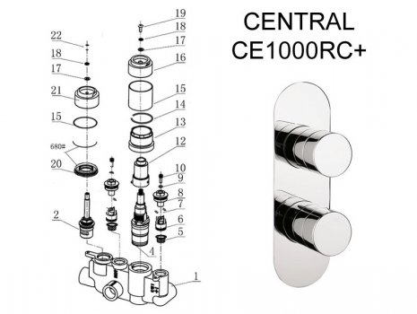 - Crosswater Central thermostatic shower valve post 2013 (CE1000RC+)