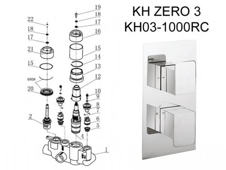 - Crosswater KH ZERO 3 thermostatic shower valve post 2013 (KH03_1000RC)