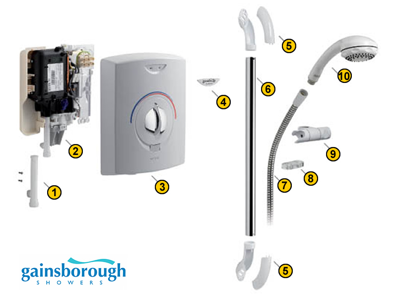 All available shower spares/replacement parts to fit the Gainsborough Stanza - White (Stanza).