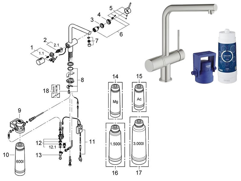 All available replacement spare parts to fit the Grohe Blue Pure Minta (31345DC2).