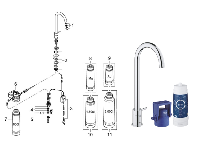 All available replacement spare parts to fit the Grohe Blue Pure Mono Starter Kit - Chrome (31301001).
