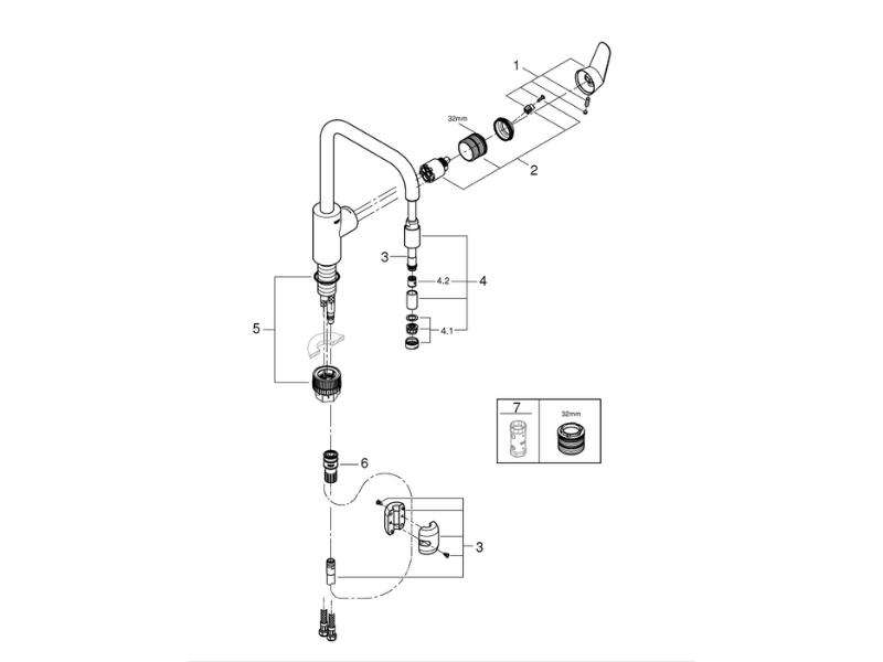 There are 6 currently available spares for the Grohe Eurodisc Cosmopolitan Single Lever Sink Mixer - Chrome (31122004).