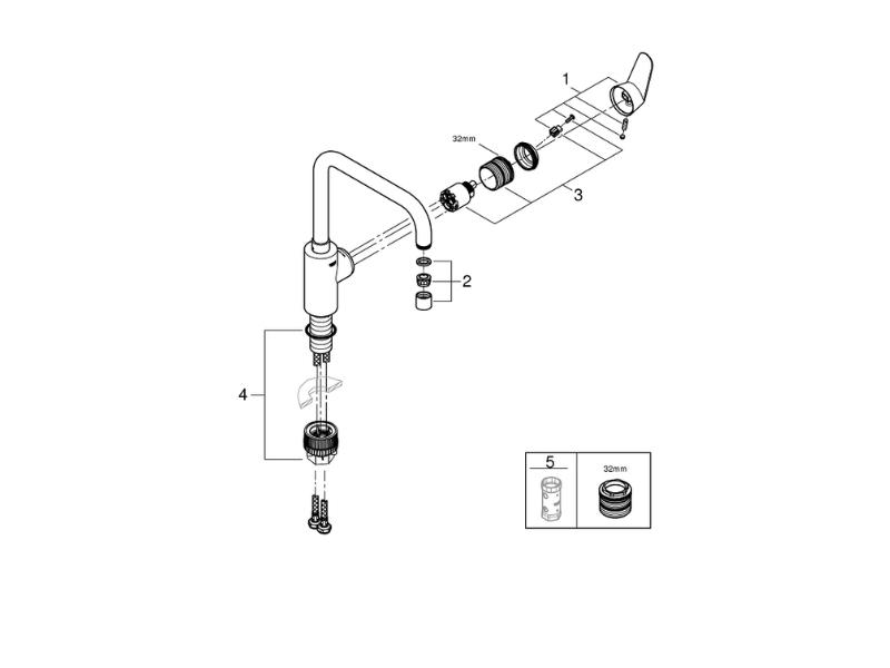 Grohe Eurodisc Cosmopolitan Single Lever Sink Mixer - Chrome (32259003) Spare Parts