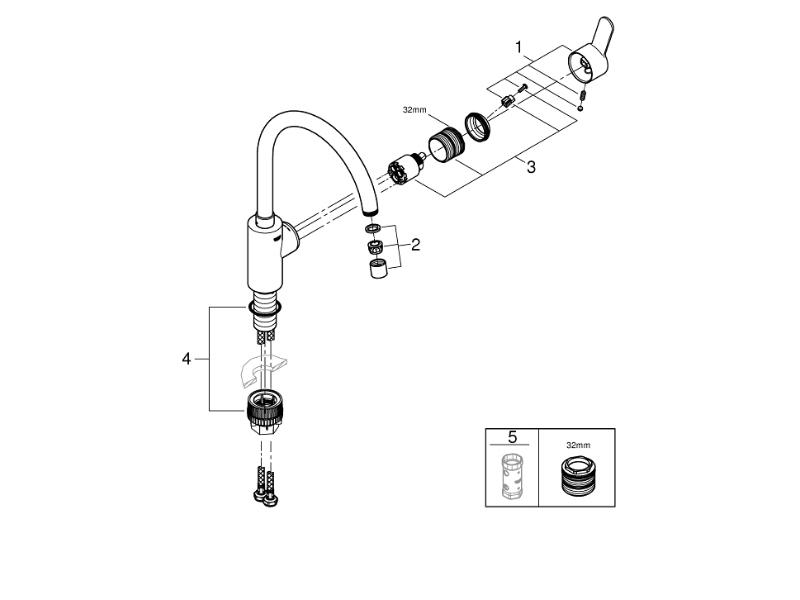 Grohe Eurostyle Cosmopolitan Single Lever Sink Mixer - Chrome (33975004) Spare Parts