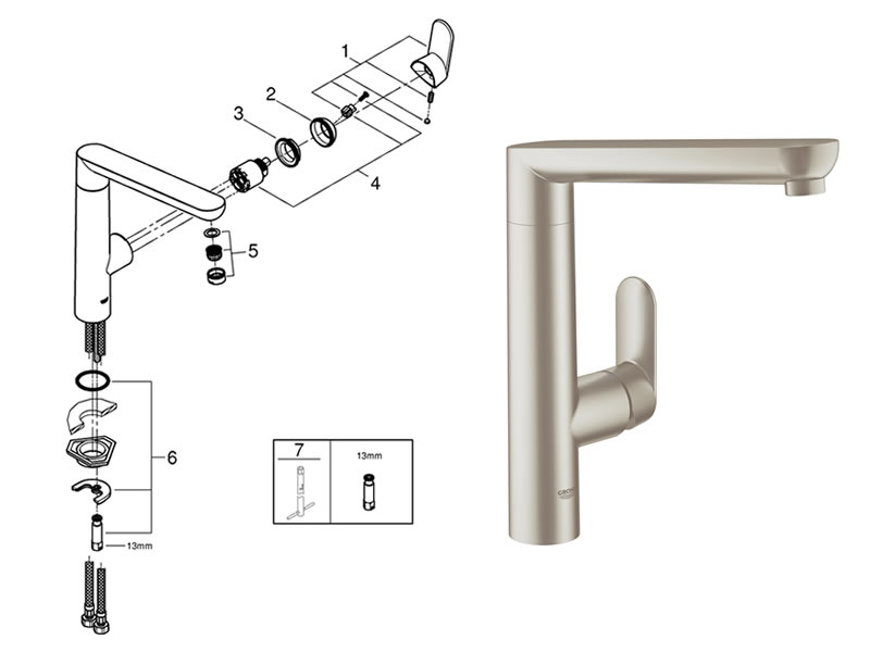 There are 4 currently available spares for the Grohe K7 Single Lever Sink Mixer - 1/2″ - Supersteel (32175DC0).