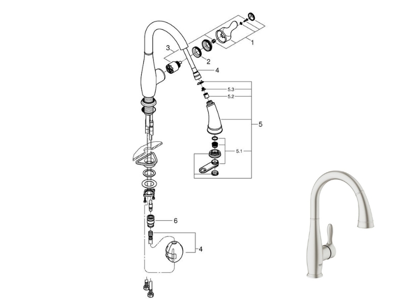 All available replacement spare parts to fit the Grohe Parkfield Single Lever Sink Mixer - Supersteel (30215DC1).