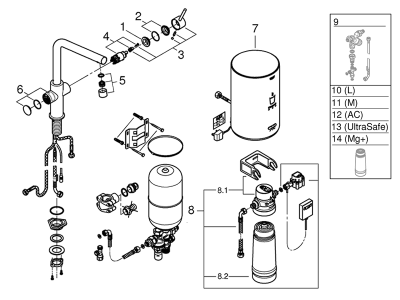 All available replacement spare parts to fit the Grohe Red Duo Kitchen Tap and Medium Size Boiler - L Spout - Supersteel (30341DC1).
