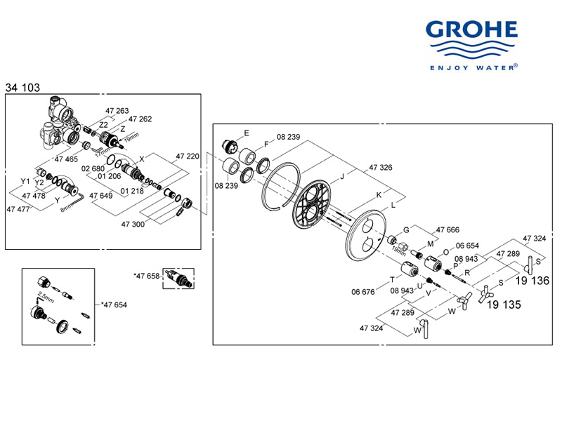 All available shower spares/replacement parts to fit the Grohe Atrio Ypsilon - 19135 000 (19135000).