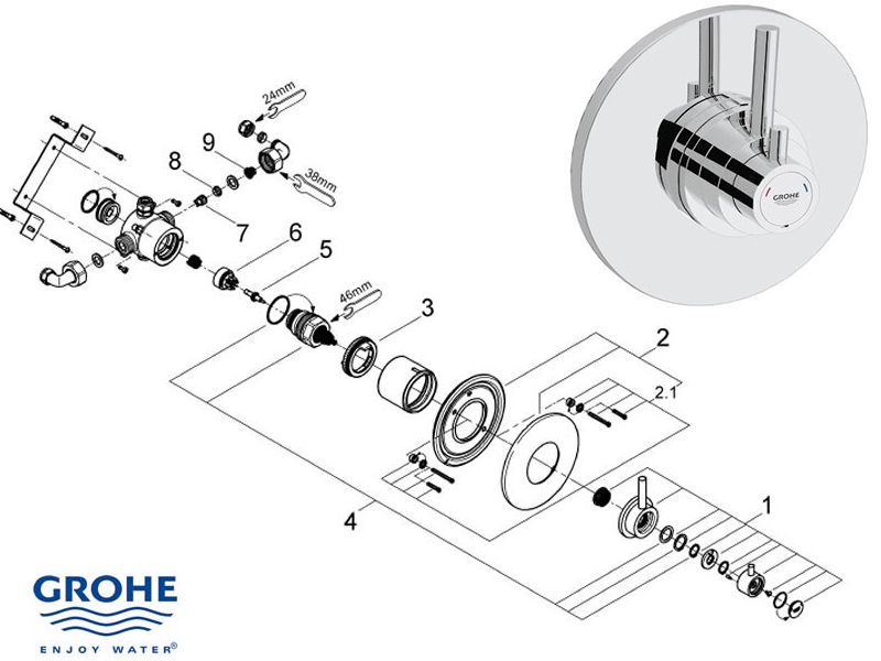 All available shower spares/replacement parts to fit the Grohe Avensys Modern Dual recessed - 34224 000 (34224000).