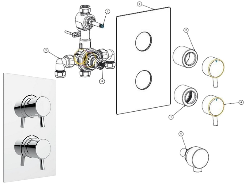 All available shower spares/replacement parts to fit the Heritage Orbit dual control concealed valve (SOC10).
