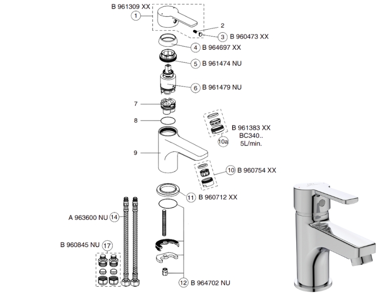 There are 10 currently available spares for the Ideal Standard Calista single lever basin mixer no waste (B1149AA).