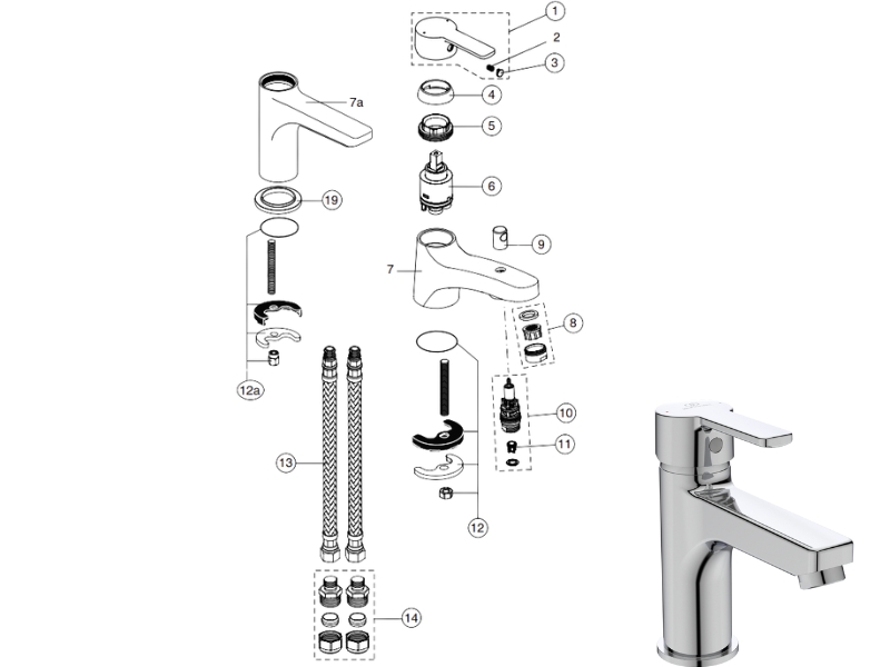 There are 11 currently available spares for the Ideal Standard Calista single lever one hole bath filler (B2137AA).