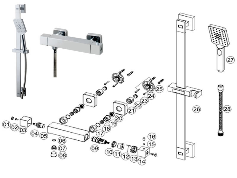 All available shower spares/replacement parts to fit the iflo Piddington Thermostatic Bar Mixer Shower - Chrome (506015).