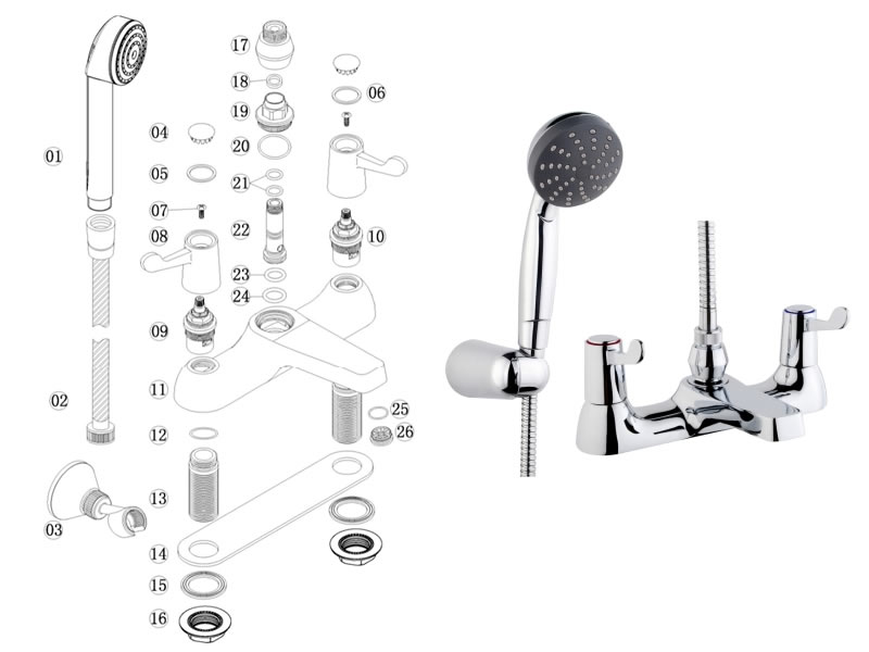 All available replacement spare parts to fit the iflo Standard Lever Bath Shower Mixer - Chrome (805783).