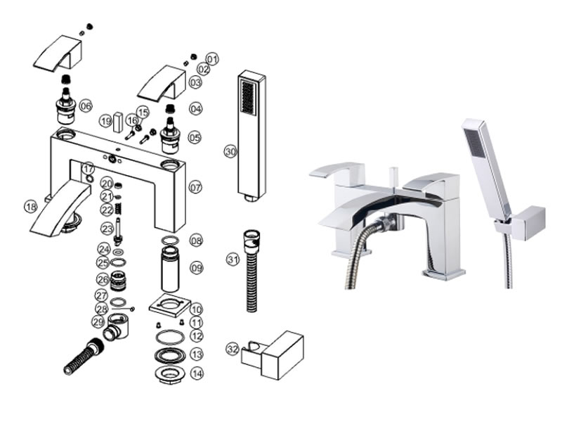 All available replacement spare parts to fit the iflo Tolosa Bath Shower Mixer- Chrome (311094).
