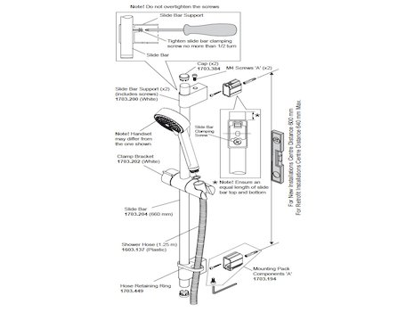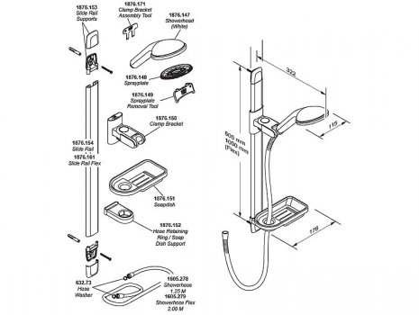 - Mira Nectar Slide Rail Kit/Shower Rail Set - White/Chrome (2.1703.007)