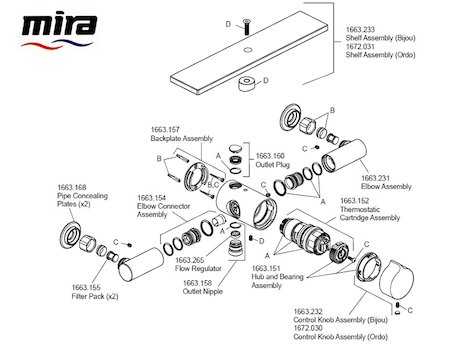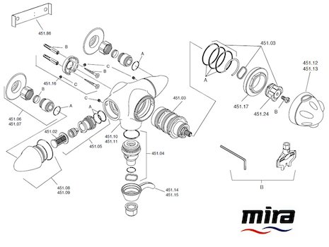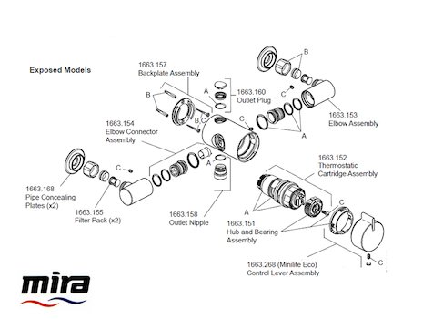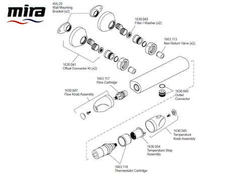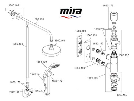 This page contains a listing of Mira products, sorted by type. Find the model you have to see a breakdown of all its available spares. You can also use our Shower Spares Finder below, which is the quickest way to find what you're looking for.