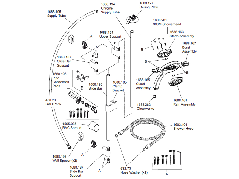 Use the main diagram to identify the shower spare(s) you need to replace. Then use the table below to locate your relevant part(s).