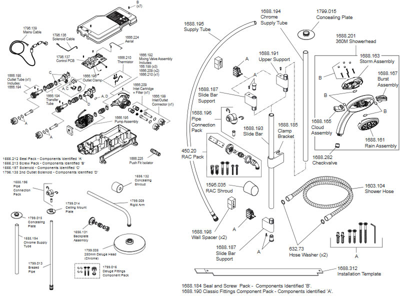 Use the main diagram to identify the shower spare(s) you need to replace. Then use the table below to locate your relevant part(s).