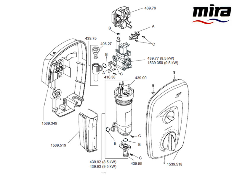 Use the main diagram to identify the shower spare(s) you need to replace. Then use the table below to locate your relevant part(s).