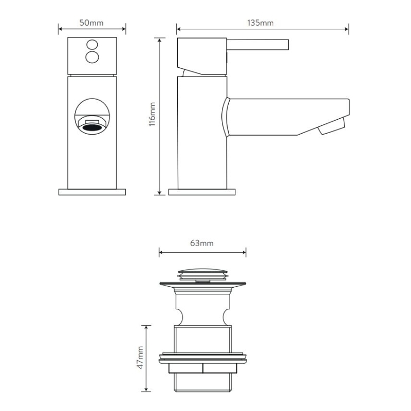 - Name Aqualisa Uptown Small Basin Mixer Tap - Includes Waste - Chrome (CB.SPT.19)