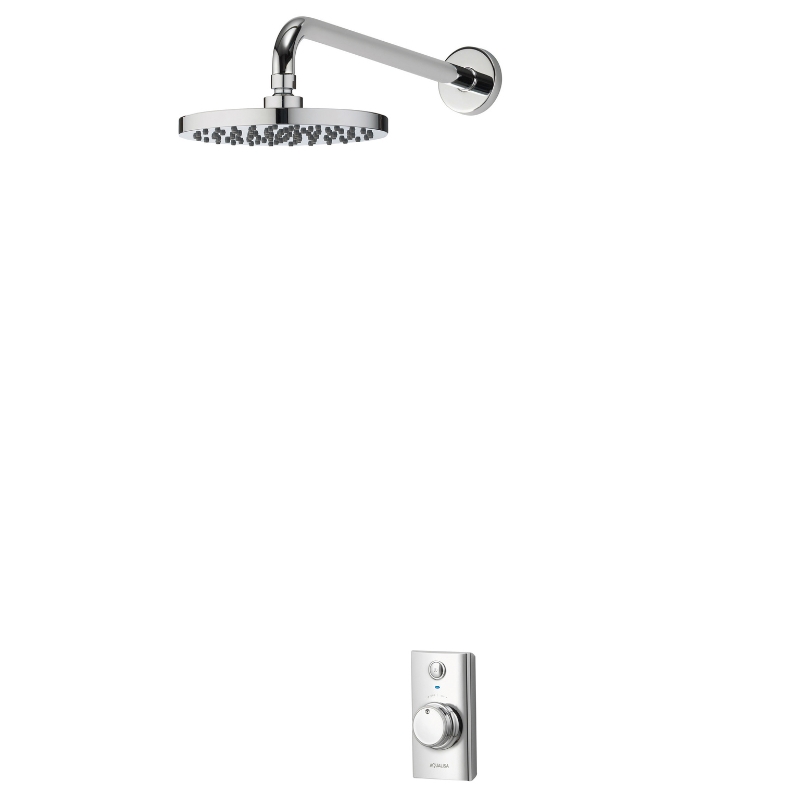 Visage Q Smart is now fitted with the new and improved Aqualisa SmartValve™ that delivers the most advanced showering systems available in terms of performance selection, safe, regulated temperature control and eco-friendly water usage. This is a fixed overhead shower, with a slim and compact, all-chrome control panel. Behind it, a single cable easily connects to the intelligent SmartValve™, which can be located in the most accessible position 7.5 metres away from the shower area. With Wifi connection, showering choices can be managed from a smart phone using the Aqualisa app or voice control with online data available showing water usage and indicative costs. Suitable for approved low pressure water systems only.