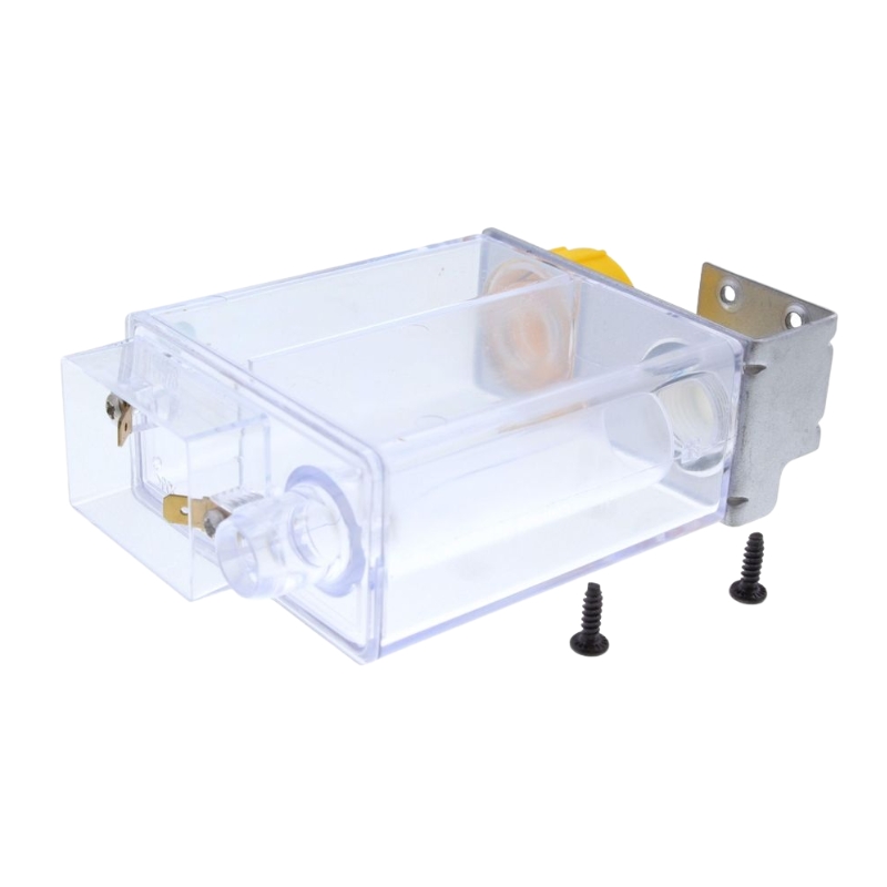 The Baxi brand condensate trap is for use in Combi, System IE, Main Combi/Combi HE, Main HE and Performa boilers. The condensate trap holds discharge that accumulates in the primary heating or cooling system caused by changes in pressure and temperature. A usually plastic discharge pipe connected to the condensate trap sends held water out of the property because it can contain low levels of acid due to CO2 from the combustion process dissolving in the water.