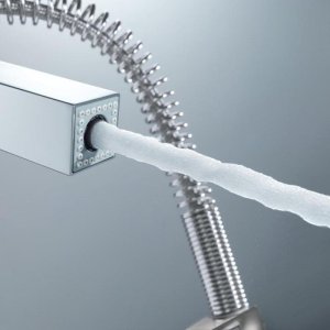 Passionate home chefs and busy family cooks alike need kitchen kit that can keep up with them. GROHE Eurocube Professional is the perfect tap for the demanding modern kitchen, with useful features and great contemporary looks. The tap features a spring-mounted professional spray head with a swivel range of 360°. For extra reach and flexibility there is also a pull-down shower head feature with fine spray and jet spray options, great for rinsing veg and cleaning up, as well as reaching across a double sink. Inside, GROHE SilkMove cartridge technology guarantees a lifetime of smooth movement and precise water and temperature control. Thanks to the Easy Installation System the tap is swift and straightforward to install. Plus the dazzling GROHE Starlight stainless steel finish is scratch-resistant for a pristine finish for years to come. The taps’ crisp, architectural styling adds an industrial edge to any modern kitchen scheme.