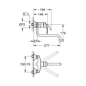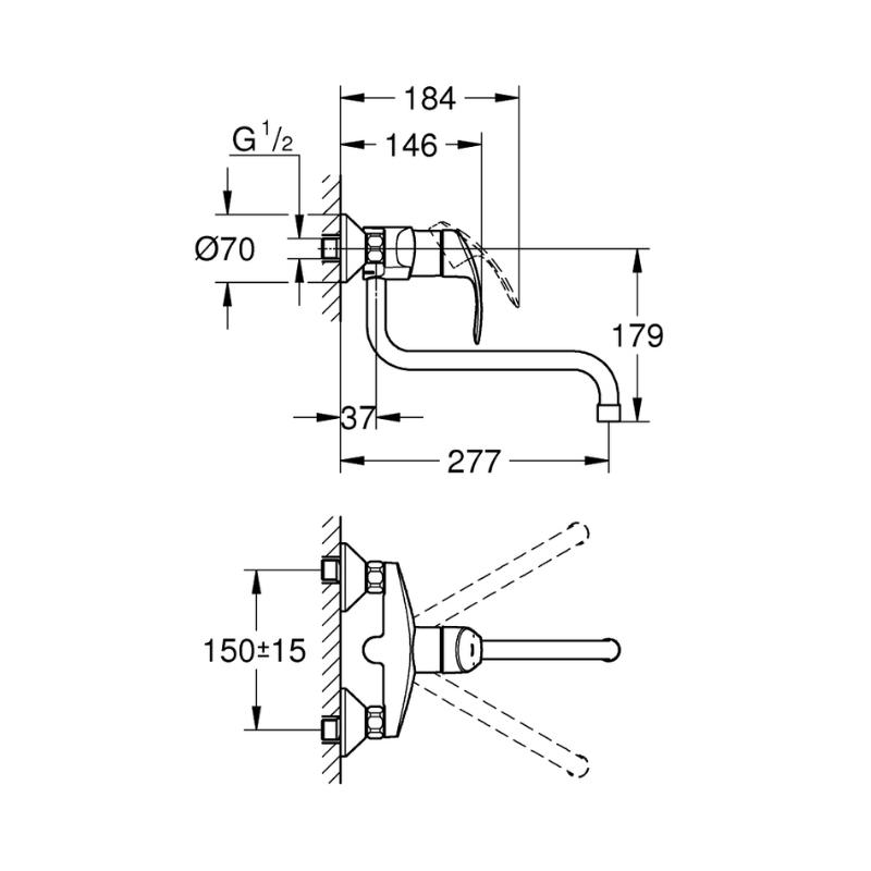 - Name Grohe Eurosmart Wall Mounted Single Lever Sink Mixer - Chrome (32224002)