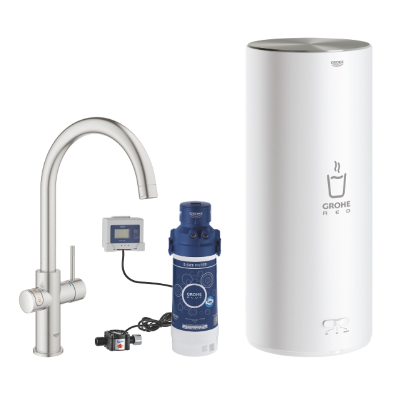 Grohe Red Duo Kitchen Tap and Large Size Boiler - C Spout - Supersteel (30328DC1)