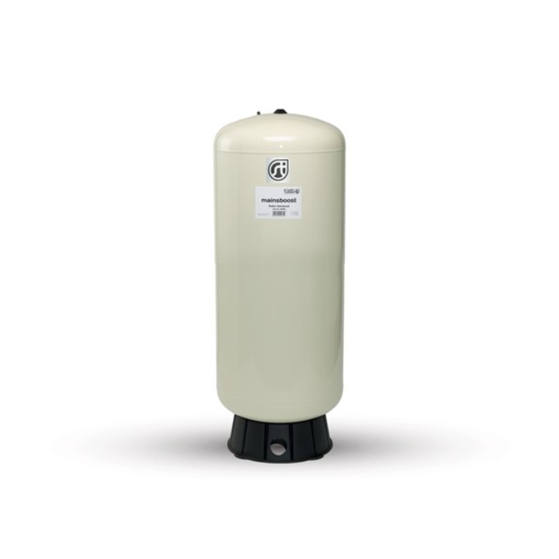 If the incoming mains water pressure is less than 2.5 bar, a MAINSBOOST Charger pump can be used in conjunction with the MAINSBOOST vessel system to boost pressure.The MAINSBOOST MB 130SV-1 features a nominal vessel size of 130 litres and a pressurised cold water water storage capacity of approximately 72 litres.