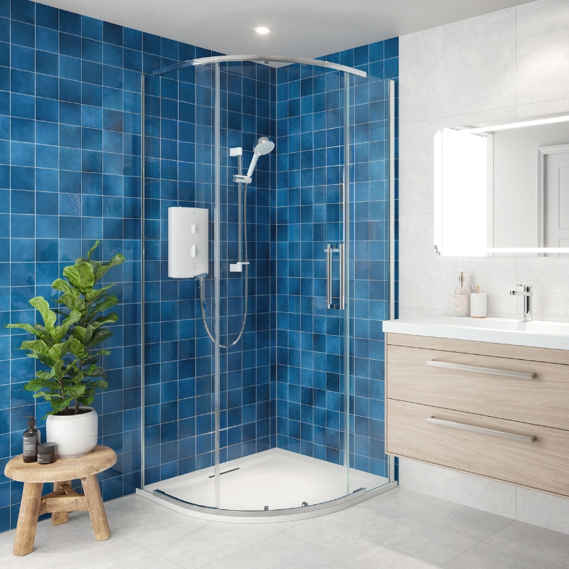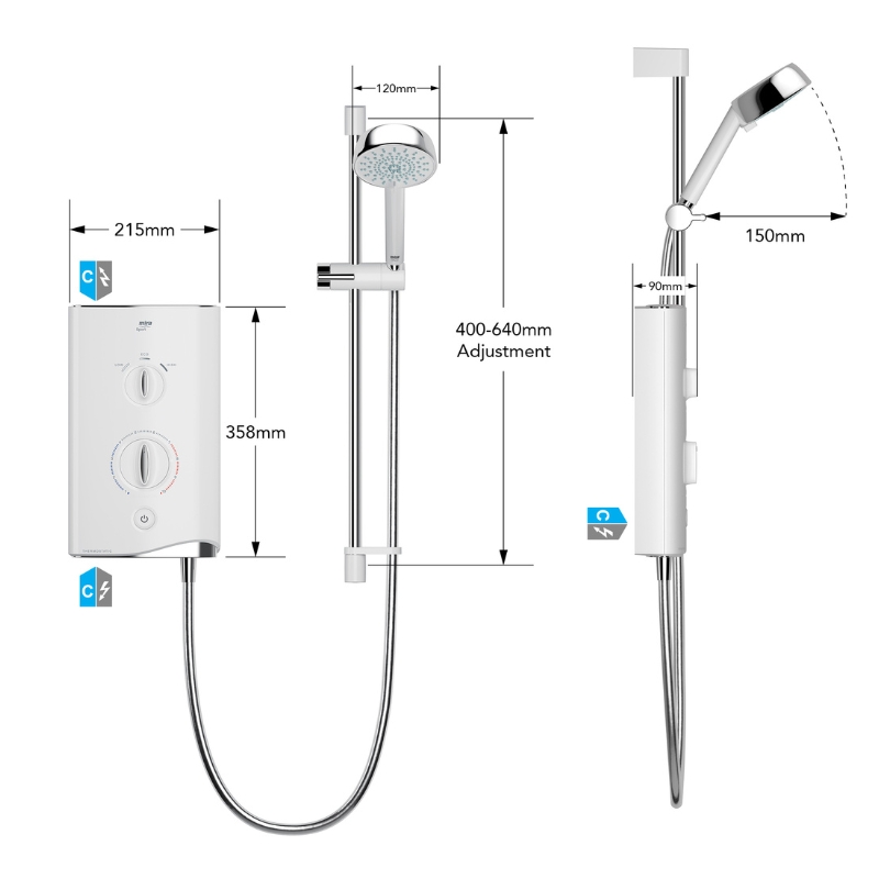 - Say goodbye to sudden freezing or scalding bursts. It’s one of the few electric showers with thermostatic temperature stability – for reliable performance and safer family showering.