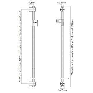 Triton Inclusive Care Shower Rail Kit - 940mm - Chrome (GAOMDE2)