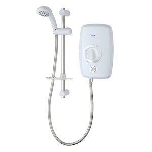The Triton T75 cold-only electric shower is a stylish and easy-to-use electric shower. It features well laid out controls which include an illuminated chrome start/stop button as well as a large easy to grip temperature control. A discreet power switch is located on the side for selecting an economy shower setting during warmer months. The large single pattern showerhead has nozzles which can be simply rubbed clean to remove any scale build-up. The Triton T75 also has a neat overlapping front cover which eliminates unsightly cover joins found on other electric showers.