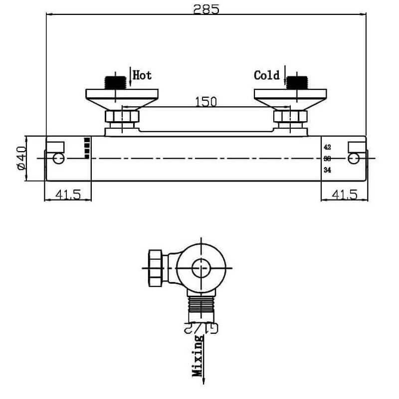 Bar Mixer Showers - Pipe Centers 150mm