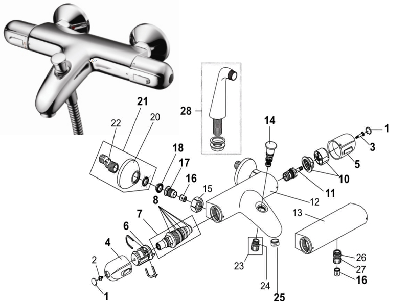 There are 7 currently available spares for the Trevi Link bath shower mixer (A3542AA).