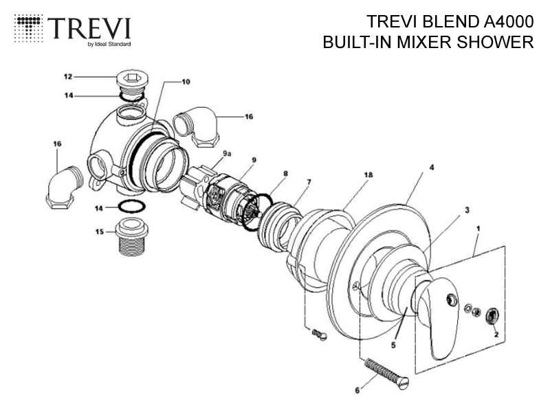 All available shower spares/replacement parts to fit the Trevi Blend Built-in A4000 (Blend A4000).