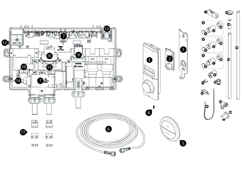 All available shower spares/replacement parts to fit the Triton Multi Outlet Processor Unit Including Cover - High Pressure (A31810503).