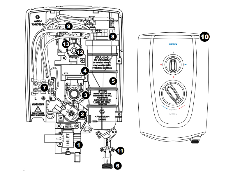 All available shower spares/replacement parts to fit the Triton Serres electric shower.