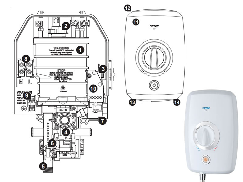 All available shower spares/replacement parts to fit the Triton T1 electric shower (T1).